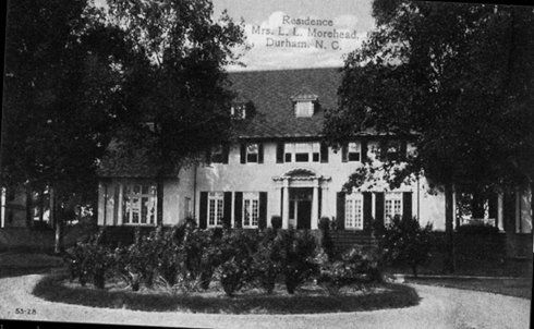 Between 1900 and 1915, houses lined both the north and south sides of Morehead Avenue. On the north side between Vickers and S. Duke, four grand houses were built east of Greystone by successful business men. All of these houses have been lost. (The block numbering scheme was changed by the city sometime between 1915 and 1923. House numbers generally remained the same. The block number used in this article is the 800 series, but some sources may refer to the 500 series. Interestingly, census and city directory data show Greystone in another block, but no street break is apparent today. Fairview alley may have run between Greystone and the Wily house, accounting for the numbering discrepancy.)